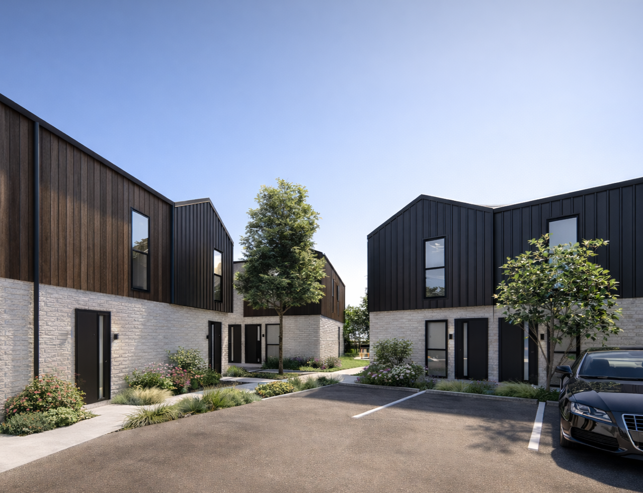 Timber-look cladding, masonry and metal detailing provide texture and contrast, maintaining a cohesive architectural identity while ensuring durability and long-term performance.