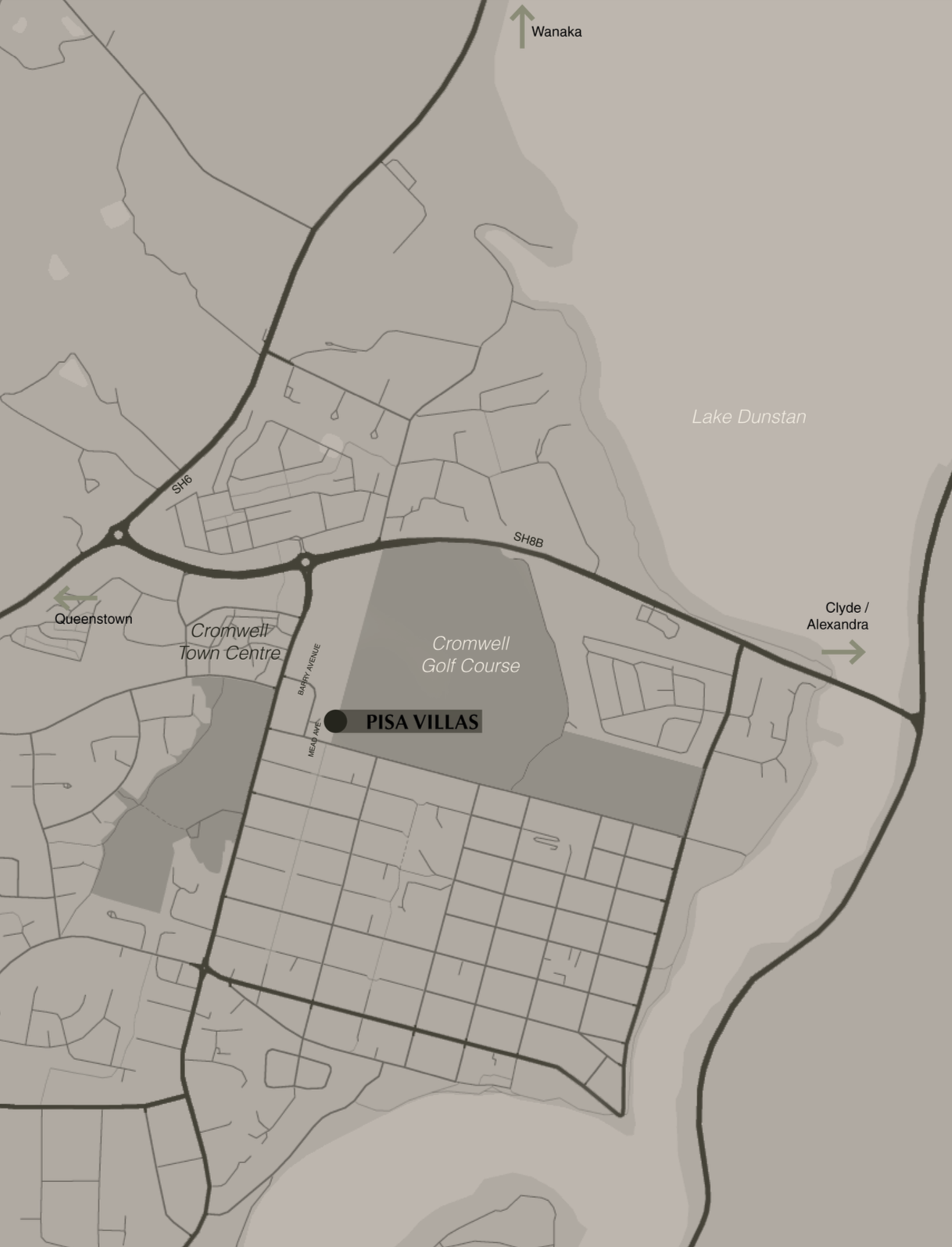 Located in central Cromwell within the sought-after Central Otago region, Pisa Villas adjoins the golf course and offers a rare balance of town-centre convenience and open green outlook. Shops, cafés and essential services are within easy walking distance, enhancing both accessibility and everyday ease.